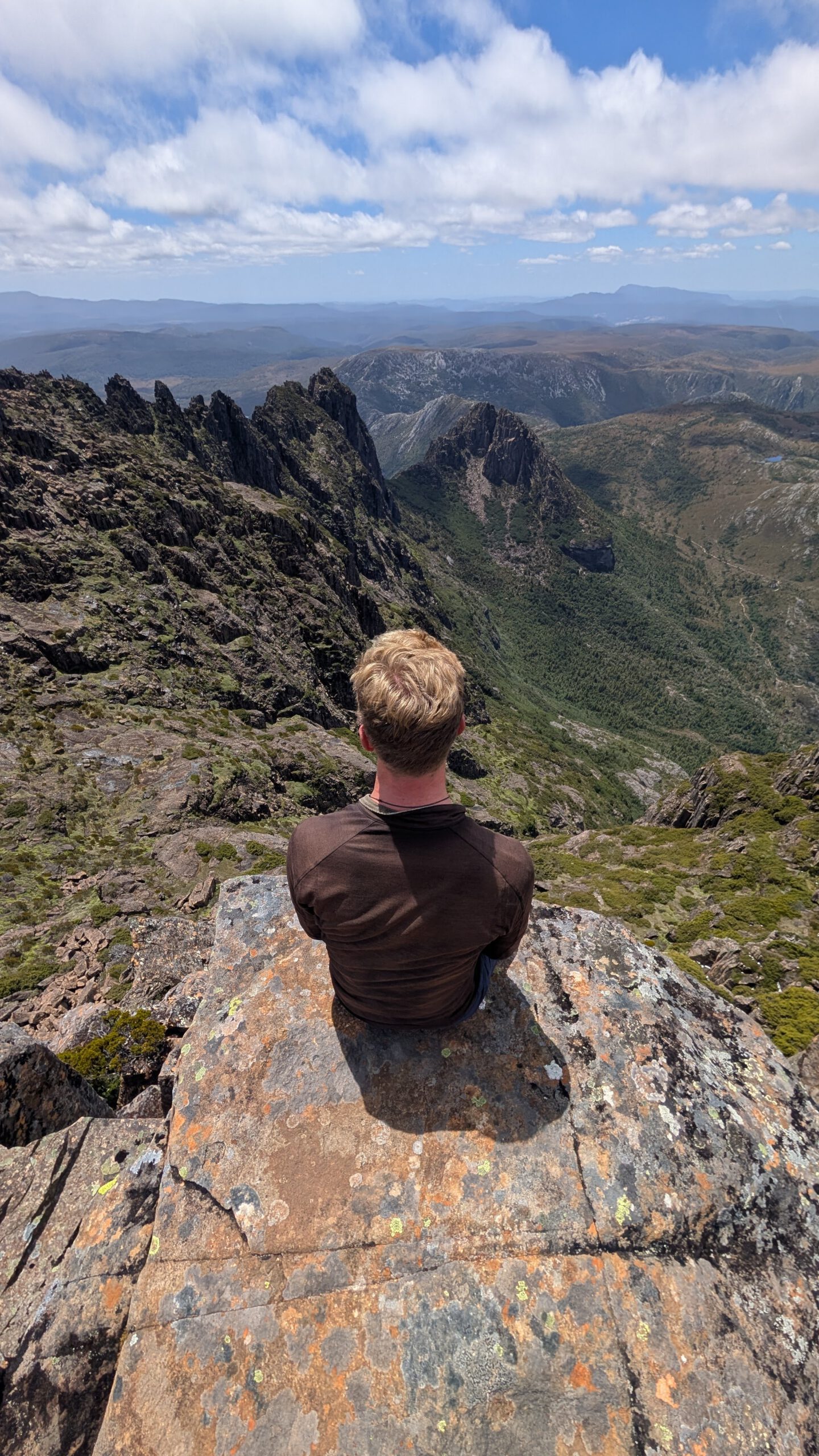 Met Canadese vrienden beklom ik de besneeuwde top van Cradle Mountain. Na een pittige klim genoten we van het uitzicht en kampeerden we gezellig samen.