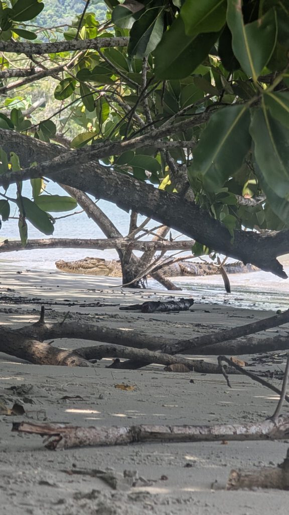 De tweede dag ga ik een snorkeltour doen naar het Great Barrier Reef. Het is misschien wel de meest iconische duik- of snorkelplek ter wereld. Ik had er ook onwijs veel zin in. Met een speedboot ging ik met een groep naar het rif toe. De speedboot komt ons ophalen op het strand, maar op dat strand staat een ranger van het Daintree National Park. Hij vertelt ons dat hij zojuist een krokodil op het strand heeft gezien en dat we weg moeten blijven van de waterrand. Het was voor mij een soort bewijs: ze zitten er dus echt. Tegelijk wil ik hem nu ook wel zien, nu hij zo dichtbij is. De ranger vertelt ons dat dezelfde krokodil afgelopen week een hond te grazen heeft genomen op het strand, oppassen dus. Net voordat onze speedboot bij het strand komt, zien we de krokodil een paar tientallen meters verderop op het strand liggen. Wat onwijs gaaf om er nu daadwerkelijk een in het wild te zien. Een echte zoutwaterkrokodil, megagroot en krachtig. Het is behoorlijk angstaanjagend dat we hier straks een paar meter door het water moeten lopen om bij de boot te komen. De organisatie heeft ervaring met krokodillen en houdt deze goed in de gaten in het heldere water, zodat wij veilig naar de boot kunnen.