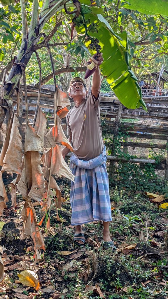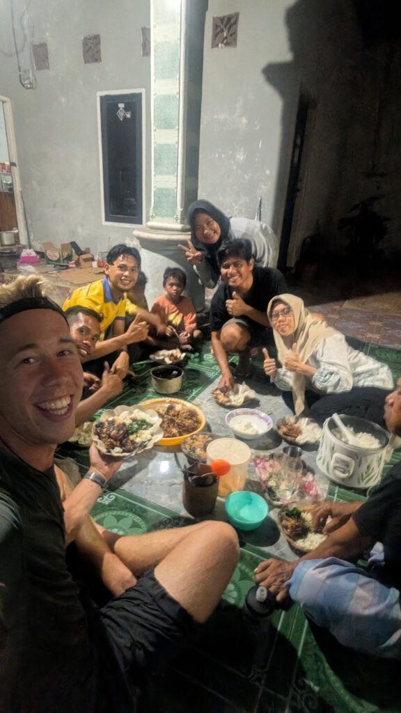 Na het zwemmen met de walvishaai fiets ik verder Sumbawa in. Het landschap hier is heel droog, er is weinig groen te zien, heel anders ten opzichte van de andere eilanden die ik heb gezien in Indonesië. Ik fiets tot een uur of vijf ’s middags en dan kom ik in een plaats waar ik een slaapplek wil gaan zoeken. Ik doe eerst bij een kleine supermarkt boodschappen, zodat ik alvast ontbijt heb. Bij de supermarkt raak ik aan de praat met een lokale vrouw. Ze spreekt goed Engels en vraagt wat ik aan het doen ben. Ik vertel dat ik met de fiets aan het reizen ben en dat ik nu heel Indonesië aan het doorkruisen ben. “En voor vandaag, wat is nu je plan, waar ga je vanavond slapen?” “Geen idee, ik heb mijn tent mee en mijn plan was om bij een restaurantje te gaan eten en slapen.” “Maar je mag anders ook wel bij mijn familie slapen.” Dat klonk natuurlijk als muziek in de oren dus ik ging mee naar het huis van haar familie. Haar ouders waren thuis, haar man, kind en wat vrienden. Het ontvangst was enthousiast en een van de eerste dingen die er gevraagd werd was “Hoe lang wil je blijven? Een dag, een week, een maand?” “Maak je een grapje?” “Nee nee serieus, je kan zo lang blijven als je wilt.” Het is een niveau van gastvrijheid waar we in Nederland helemaal geen weet van hebben dat het bestaat. Ik besluit dat ik het af laat hangen van hoeveel er te doen is in de omgeving. Ik vind het fijn om even op een plek te blijven en om een soort te integreren in een gezin, maar ik ga hier niet blijven om het blijven.