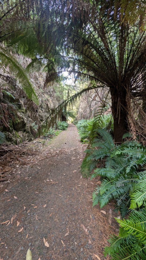 Na het centraal hoogland fiets ik naar de oostkust van Tasmanië. Onderweg naar de oostkust fiets ik over een mooi fietspad. Wat hier in Australië regelmatig gebeurt, is dat oude treinrails worden getransformeerd tot fietspad. Ideaal, want deze fietspaden lopen — doordat het vroeger treinrails waren — nooit heel steil omhoog of omlaag. Vaak lopen deze paden ook dwars door de natuur zonder autowegen in de buurt.