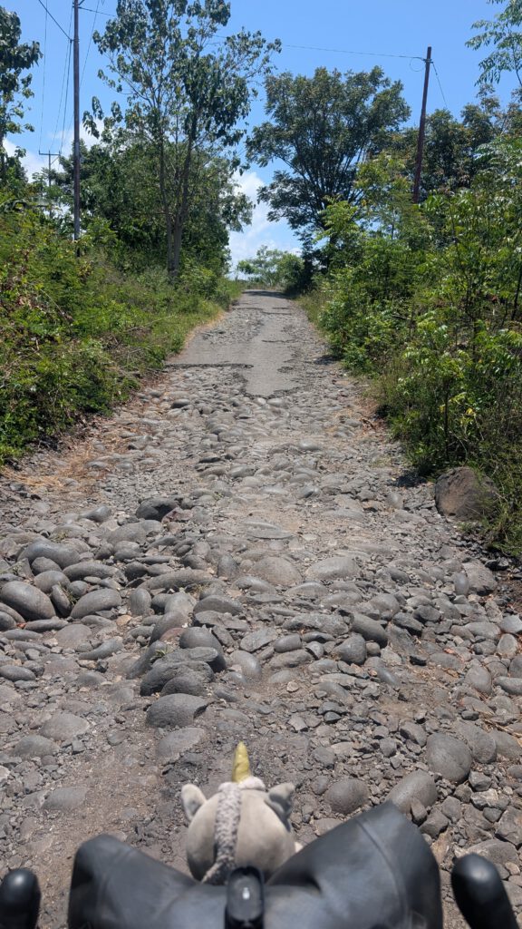 Na de komodo tour ga ik twee dagen in Flores fietsen naar de stad Aimere, vanaf daar zal ik heen en weer gaan naar Sumba. De eerste dag fiets ik de bergen in, maar die dag fiets ik niet veel. Het regent veel, ik heb de tijd en vooral geen zin om door de regen te fietsen. Genoeg te doen tijdens het schuilen, zoals filmpjes bewerken en verhaaltjes zoals deze schrijven. Ik vind een restaurantje naast een waterval. Het personeel is nog bezig met schoonmaken, alles is vies geworden vanwege overstromingen door de vele regen. Ze maakten zelf al de grap dat het restaurant vandaag in de waterval stond in plaats van ernaast. De eerste dag fiets ik over de doorgaande weg en daarna ga ik de doorgaande weg af en ga ik naar de kust.