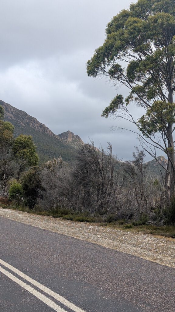 Vanaf Strahan fiets ik naar het centraal hoogland van Tasmanië; dit is meer een toendralandschap. Wat dat betreft is Tasmanië behoorlijk divers qua natuur. Het is hier vrij populair om met de fiets te reizen en in dit deel van het eiland ontmoet ik ook een aantal andere fietsers. Het was een tijd geleden dat ik andere reisfietsers tegenkwam en het is leuk om even een praatje te maken. Ze gaan helaas de andere kant op, anders hadden we een stuk samen kunnen fietsen. Tijdens een pauze ontmoet ik hier ook een Portugese meid die liftend aan het reizen is. We zijn toevallig bij hetzelfde supermarktje en raken aan de praat. Ze is, net als ik, ook al twee jaar aan het reizen en gaat de wereld rond in de tegenovergestelde richting. Alle stukken over het water legt ze ook liftend af; ze reist bijvoorbeeld met zeilboten mee. Ik vind het superindrukwekkend en op dezelfde manier vindt zij het indrukwekkend wat ik aan het doen ben. Ik zie het zelf als iedere dag een stukje fietsen en vergeet soms te beseffen dat ik ook een onwijs bijzondere reis aan het maken ben. Het was een leuk en inspirerend gesprek!