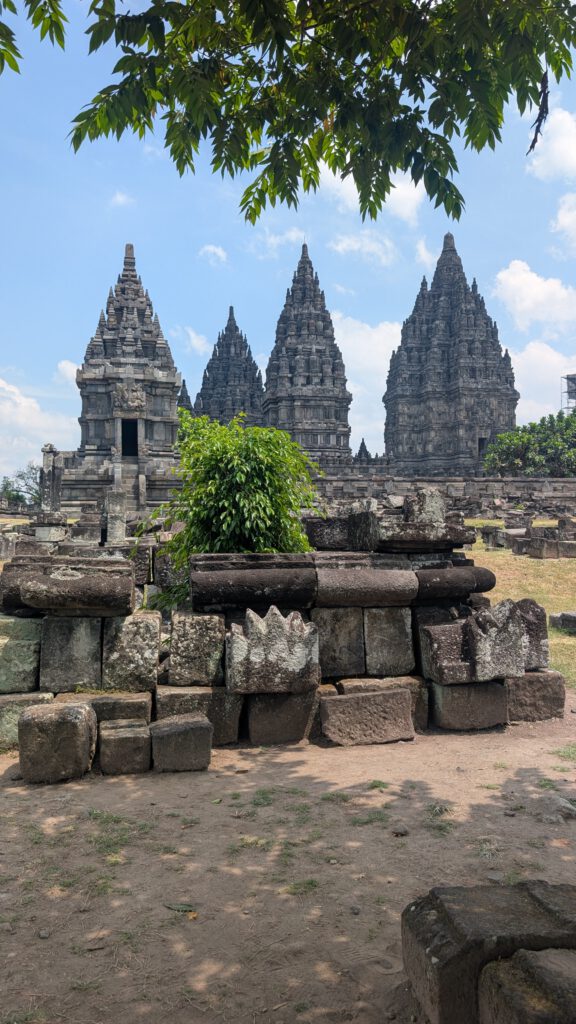 Aan de andere kant van de stad ten opzichte van Borobudur ligt nog een andere indrukwekkende tempel. Het is de Prambanan tempel en die bezoek ik wanneer ik weer verder ga naar het oosten. Het is een complex van meerdere tempels. Bij de eerste tempel biedt iemand aan om een rondleiding te geven. Ik ben niet geïnteresseerd en heb geen zin om nog meer te betalen. Echter is het een student die aan het trainen is om daar gids te worden. Het is een jongen van 19 en vanuit school moeten ze gaan oefenen en mogen ze daarbij geen geld vragen. Hij neemt mij één op één mee en dit is eigenlijk super chill. We hebben een leuke klik. Hij weet veel te vertellen over de tempel en de verhalen die erbij horen. Het is een groot complex met meerdere tempels en hij neemt mij mee door de eerste, wat ook de grootste is. Na een tijdje rondwandelen door de andere tempels heb ik er op een gegeven moment ook wel genoeg van. Het is tijd om weer verder te gaan, tijd om weer te fietsen.
